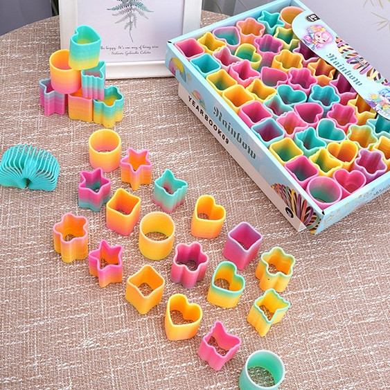 Colorful Rainbow Magic Spring Toys Circle Spring Plastic Coil Spring Toy Kids Educational Shapes Spring Gift Toys Games