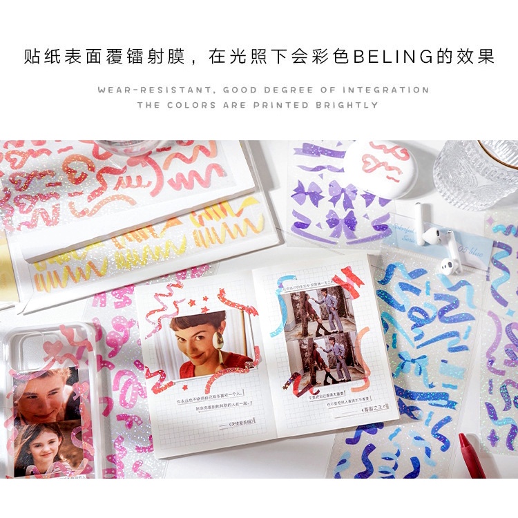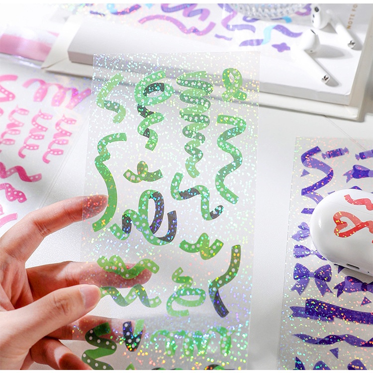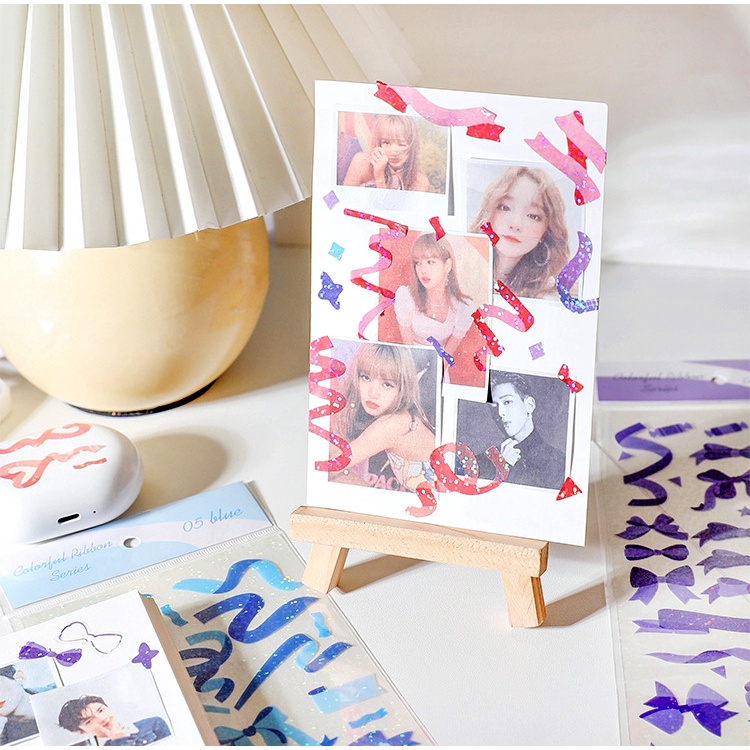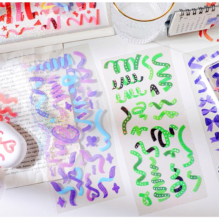 Colorful Ribbon Sticker label (1 sheet) DIY Korean Decoration Stickers Scrapbook Planner Toploader Deco Sticker