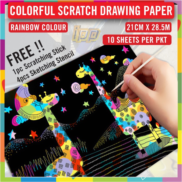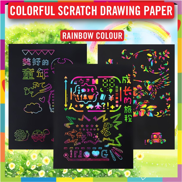 Colorful Scratch Drawing Paper / Rainbow Colourful Odorless Magic Scratch Art Drawing Paper/ A4 21cm x 28.cm 10pcs pkt