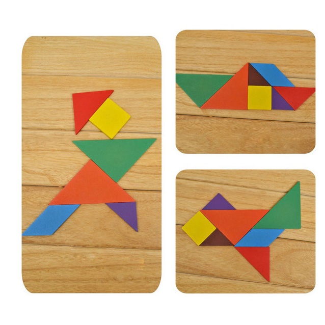 Colorful Tangram 7pcs puzzle Dissection Magnet Wood seven flat polygons (tans) Early Learning Brain Simulation wooden