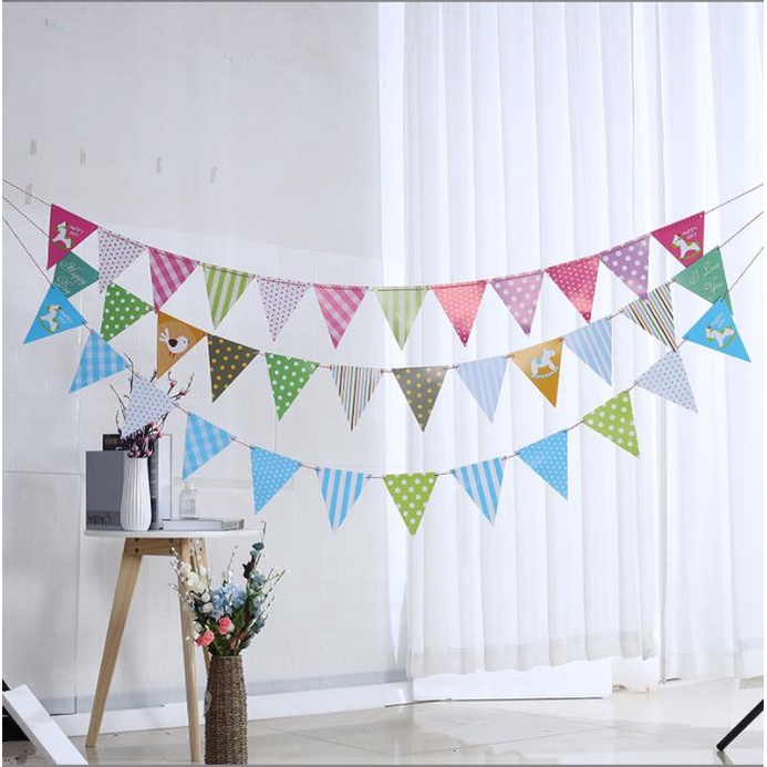 Colorful triangle flags banner for party decoration kids happy birthday/Sepanduk bendera segitiga berwarna-warni