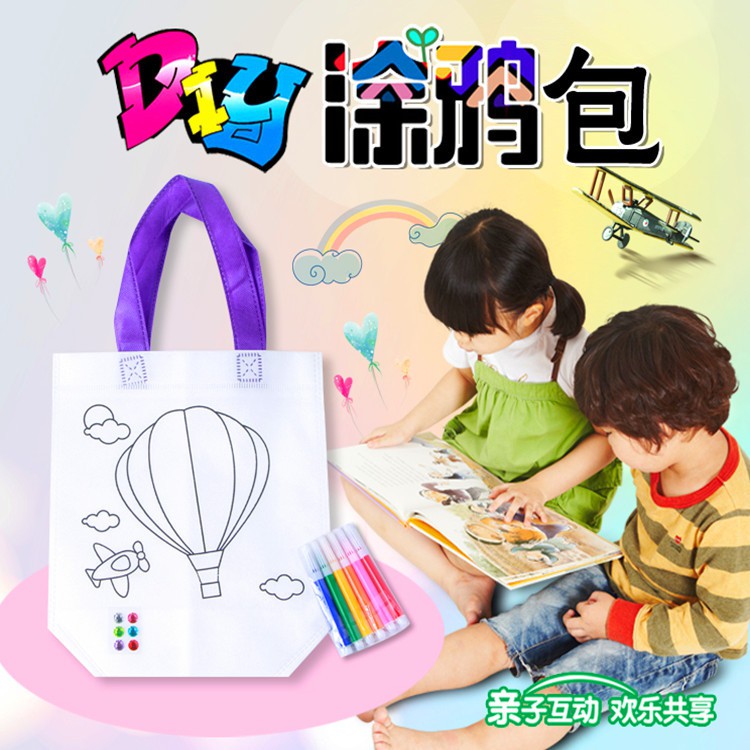 Coloring ECO Bag Children Handmade DIY Colouring Bag Art Craft kit coloring bag Kindergarten School Door Gift