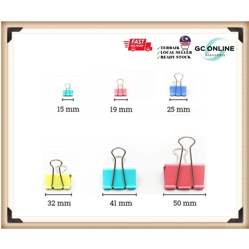 Colour Binder Clip / Paper Clip / Double Clip (Drum) - 15mm / 19mm / 25mm / 32mm / 41mm / 51mm