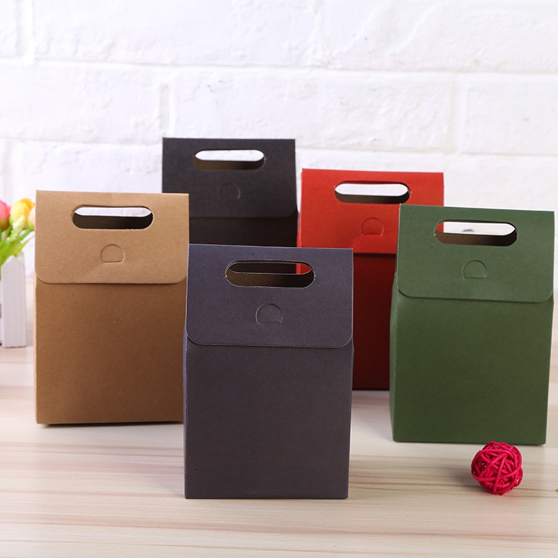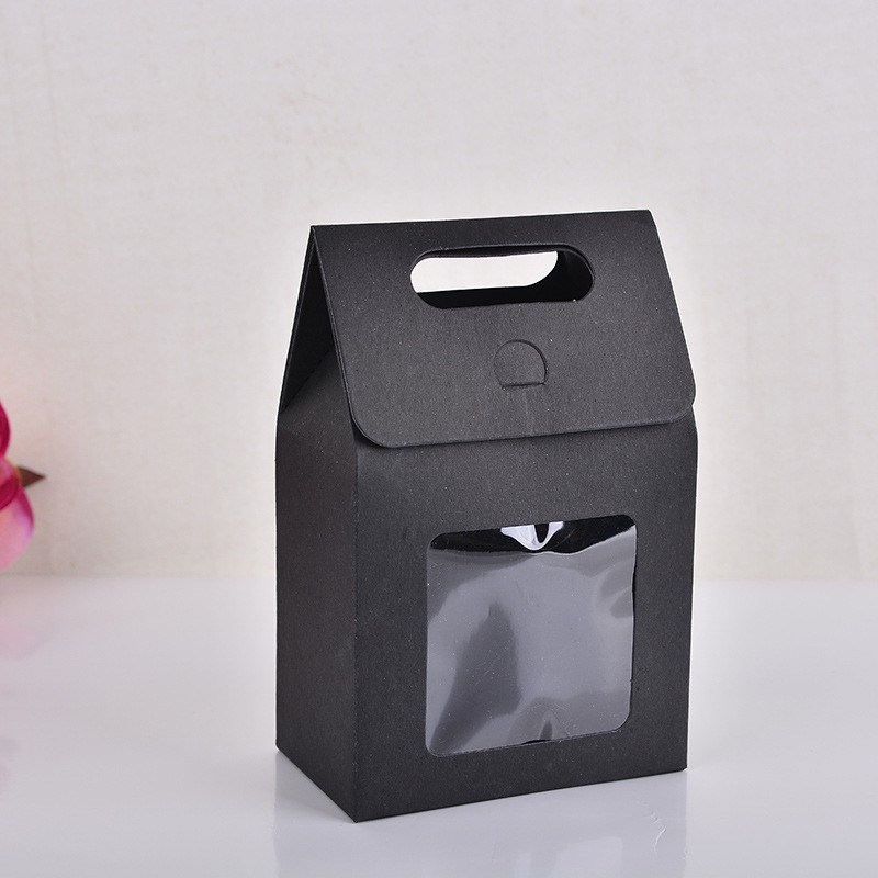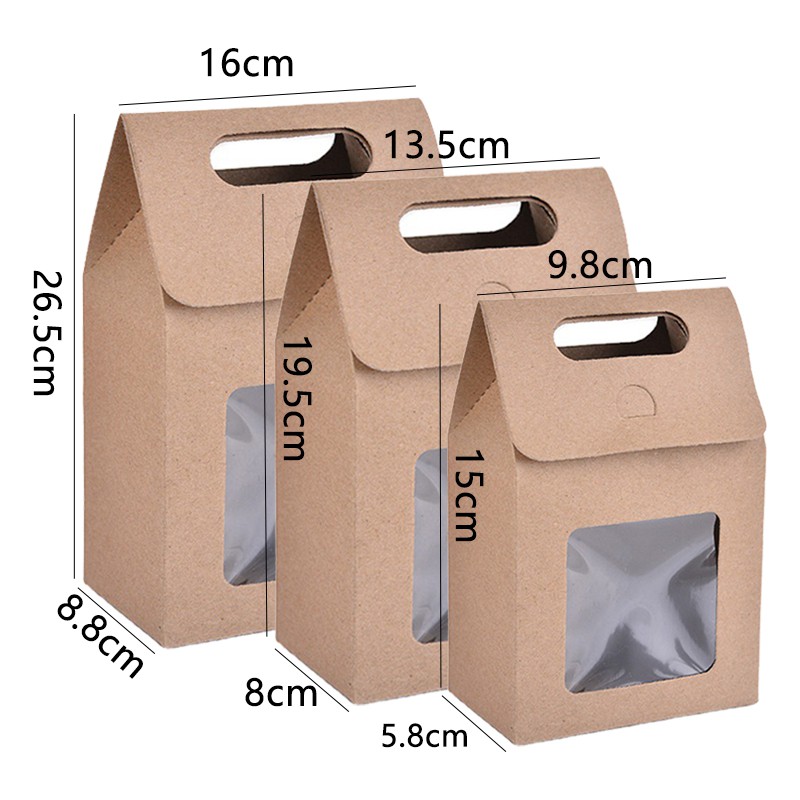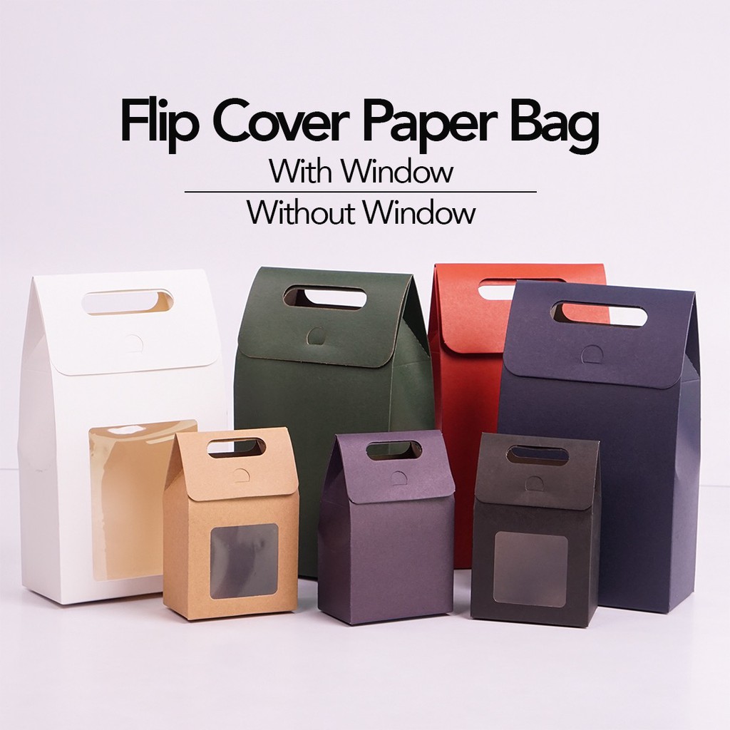 Coloured Monochrome Flip Cover Paper Bag / Window Paper Bag / Paper Goodies Bag / Kraft Paper Gift Bag with Handle