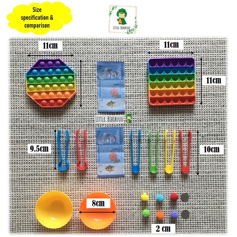 Colourful Counting Sorting Matching Bowl/Pom Pom/Tongs/Pop It Fidget Montessori Early Learning Child Cognitive Activity