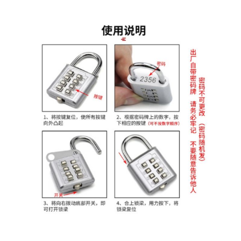 Combination Padlock 35MM 8 digit / 10 digit 40mm preset password padlock traveler padlock letterbox padlock digit lock