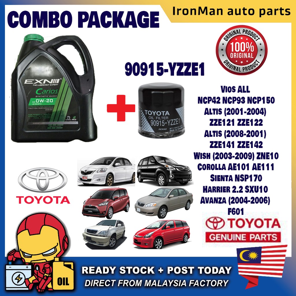 Combo SET EXN Carios 0W-20 3LITRES Semi Synthetic Engine Oil AXIA BEZZA MYVI WIRA 0W20 Minyak Hitam Combo Oil Filter
