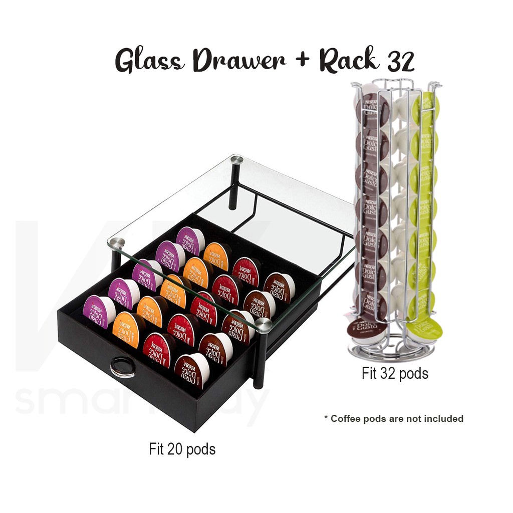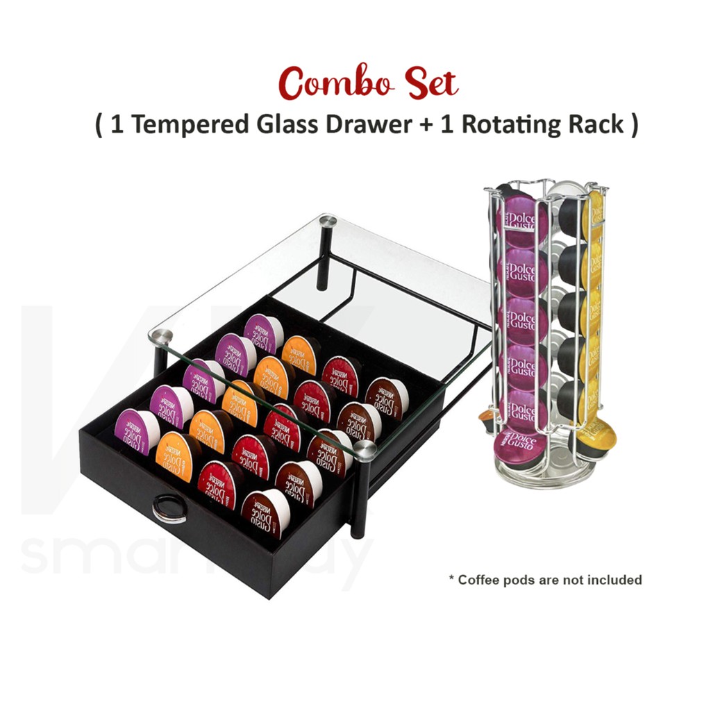 Combo set Tempered Glass Drawer + Rotating Rack for Dolce gusto nescafe capsule machine storage stand Holder