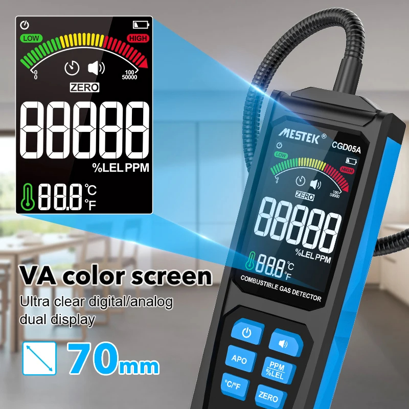 Combustible Gas Leak Detector 50-5000PPM/0-100% LEL Flexible Portable Gas Leak Detector with Sound/Screen/Vibration Alarm