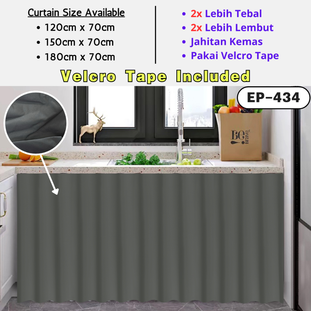 Comfy Bedding Langsir Kabinet Dapur Cabinet Curtain Kitchen Langsir Sinki Pendek Velcro Tape
