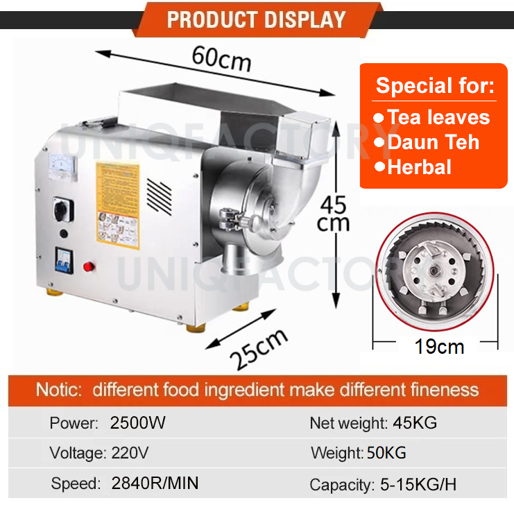 Commercial Fine Powder Grinder Pulverizer Spice Herb Cili Grain Tea Teh Daun Mill Grinding Machine Mesin Pengisar Serbuk