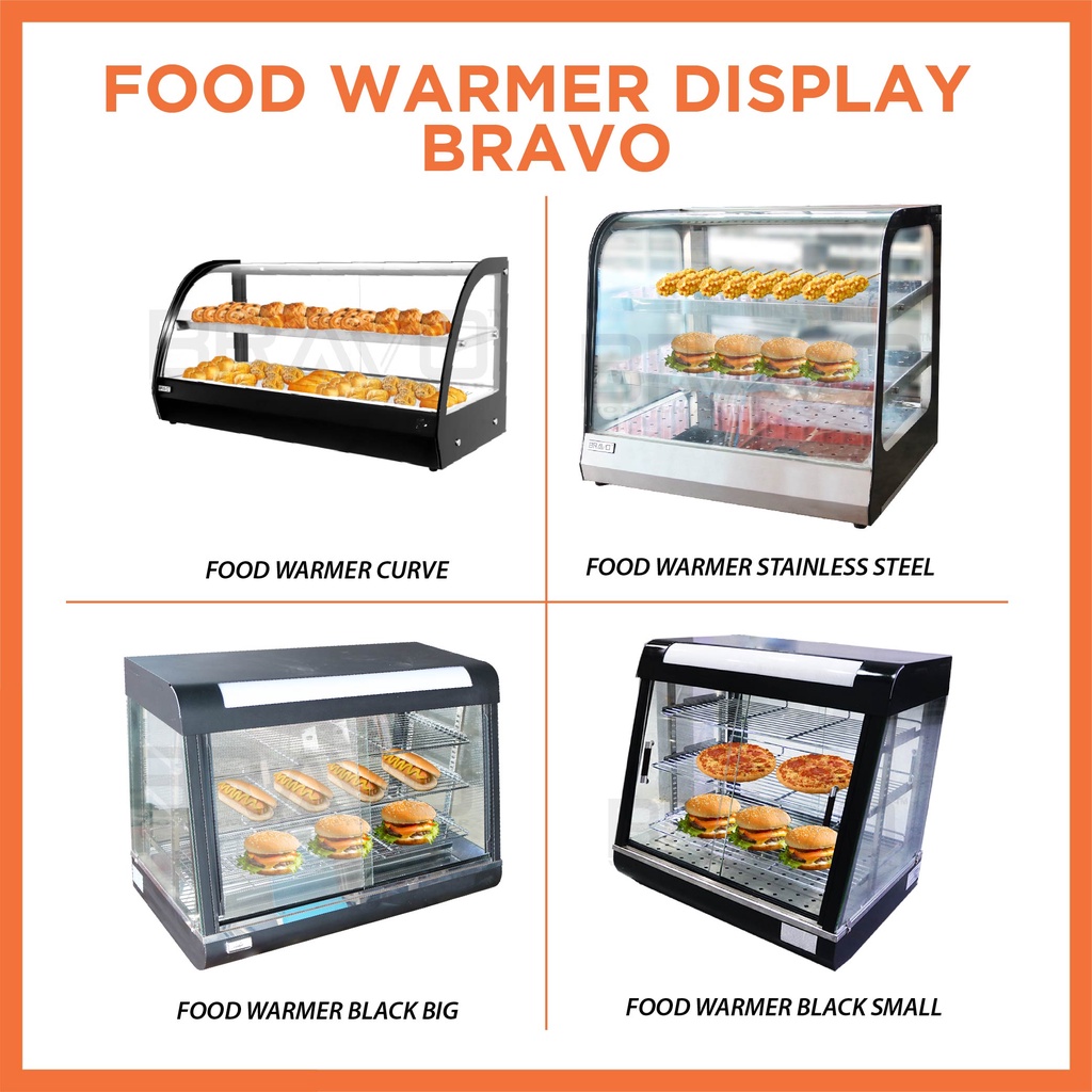 Commercial Food Warmer Display Pemanas Makanan Warmer Showcase Stainless Steel Display Ayam Goreng Curry Puff Cake TB900