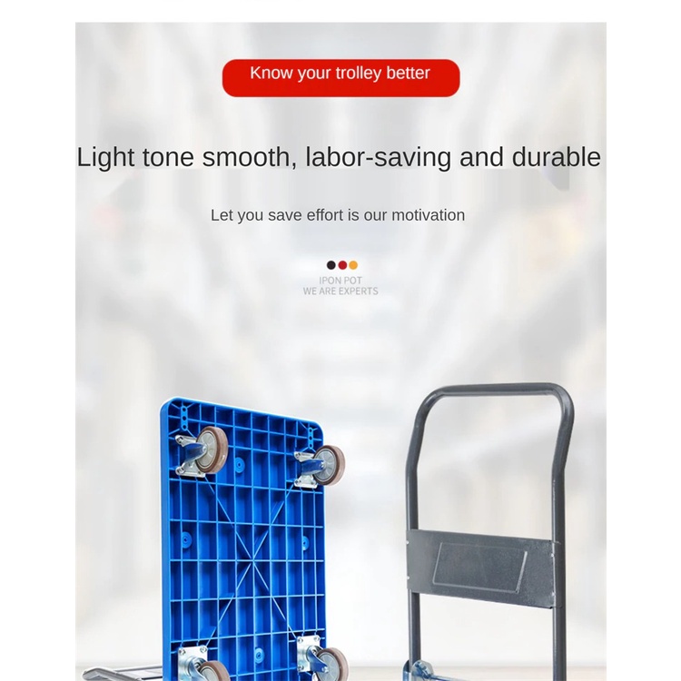 Commercial Heavy Duty Foldable Hand Truck Trolley Troli Plastic Trolley 150kg 300kg Iron PVC Foldable Plastic Trolley