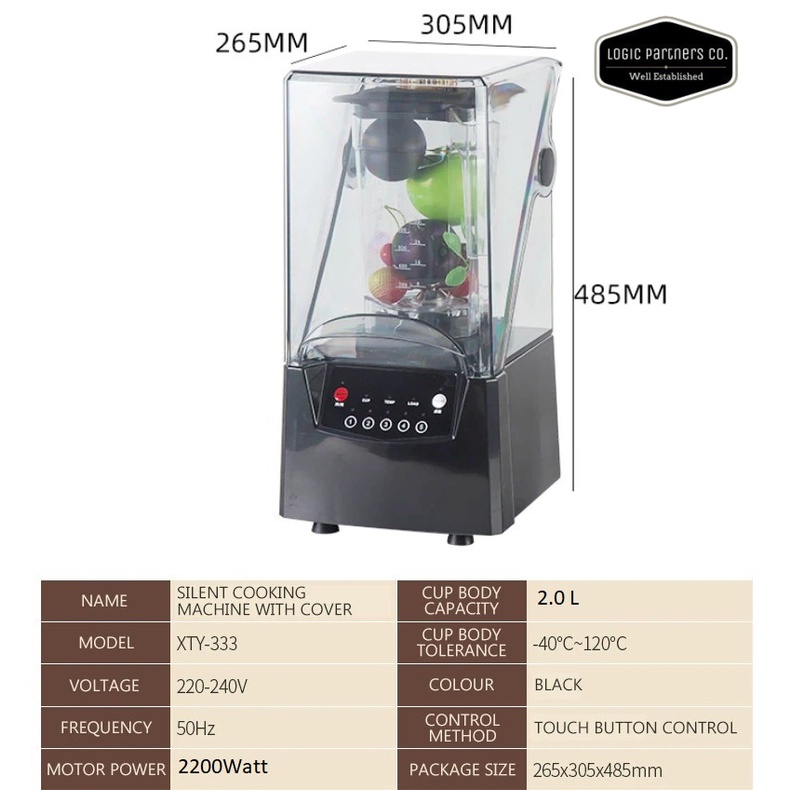 Commercial High Speed Quiet Blender 2200W Silent Noise Reduced Sound Proof Cover Ice Blended Smoothies Juice