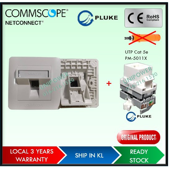 Commscope AMP Genuine 1 port angle type faceplate with shutter + Modular jack set