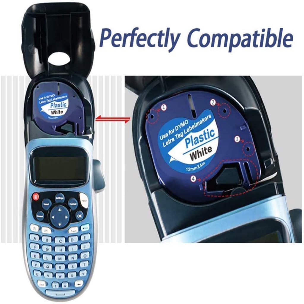 Compatible DYMO LetraTag Label Maker Plastic Tape Refills, for Dymo Letra Tag Plus LT 100H 100T, 12mm x 4m