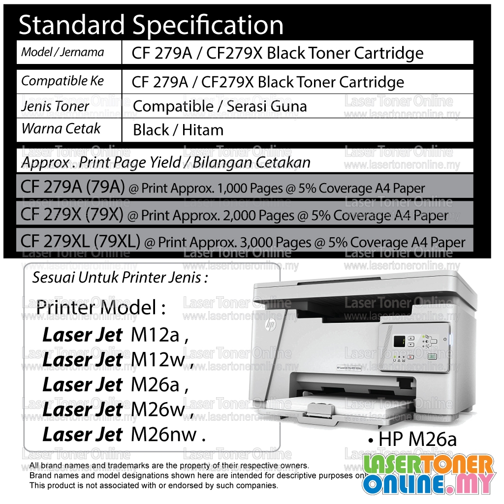 Compatible Toner CF279X 79X CF279A High Yield Cartridge H* LaserJet Pro MFP M12a M12w M26a M26w M26nw M12 M26 Printer
