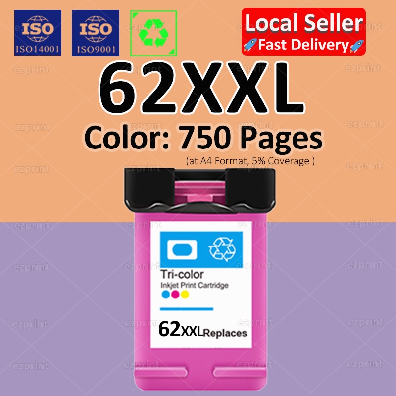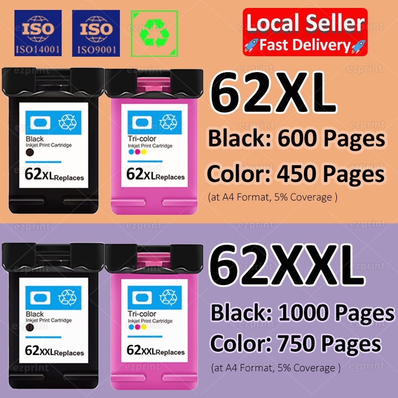 Compatible for HP 62 Ink Cartridge HP 62XL Ink HP 62XXL Ink for ENVY 7640 7643 8005 OfficeJet 200 250 5744 5746