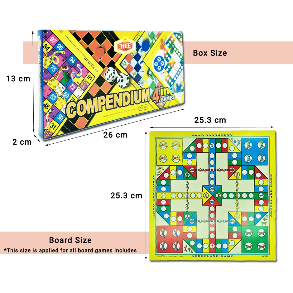 Compendium 4 In 1 Board Games For Kids & Family - 4 Multiplayer Games [Aeroplane/Draught/Snake/Sport]
