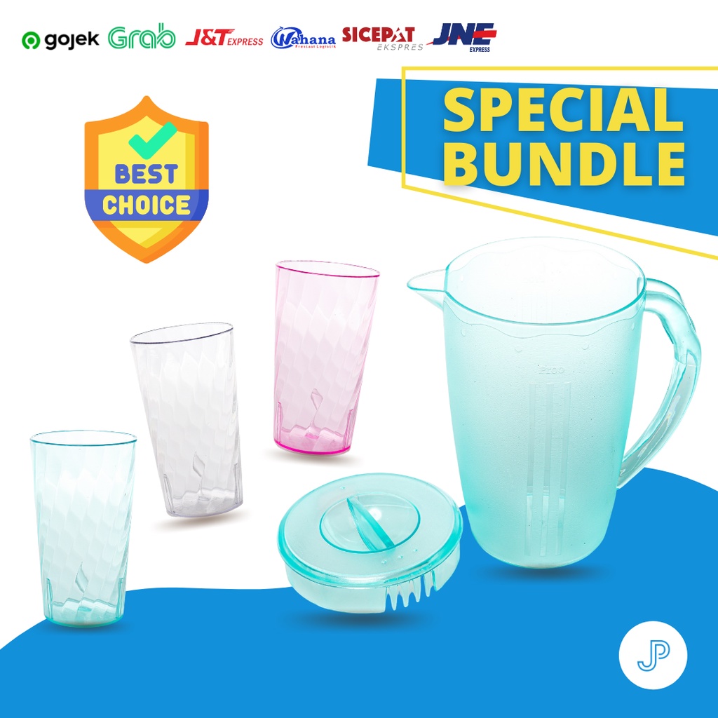 Complete Set of Water Pitcher with 3 in 1 Glass/Water Pitcher + Crystal Clear Plastic Glass Set/Water Jug Complete Set