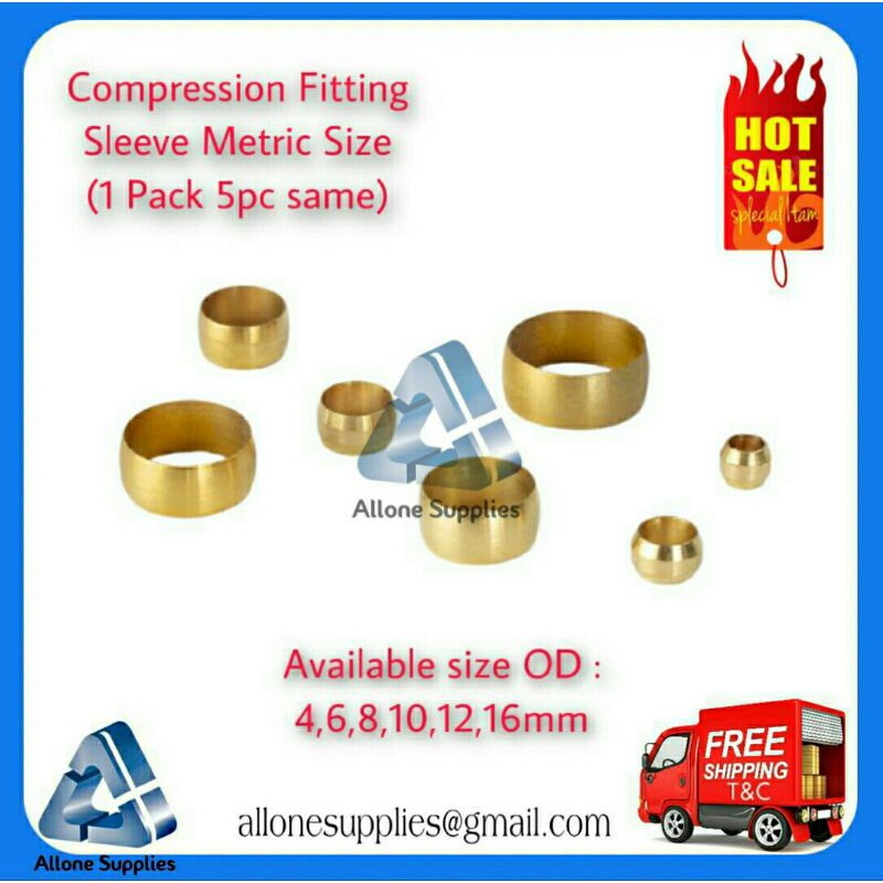 Compression Fitting Sleeve only Metric size Tube OD : 4,6,8,10,12 and 16mm , Sleeves for Compression Fitting 1 pack 5 pc