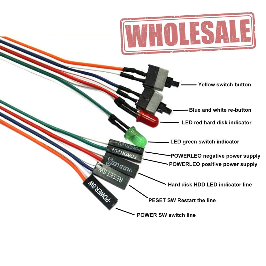 Computer Case LED Light ATX Power On Off Reset Supply HDD Momentary Push Button Switch Cable Wire for PC Desktop