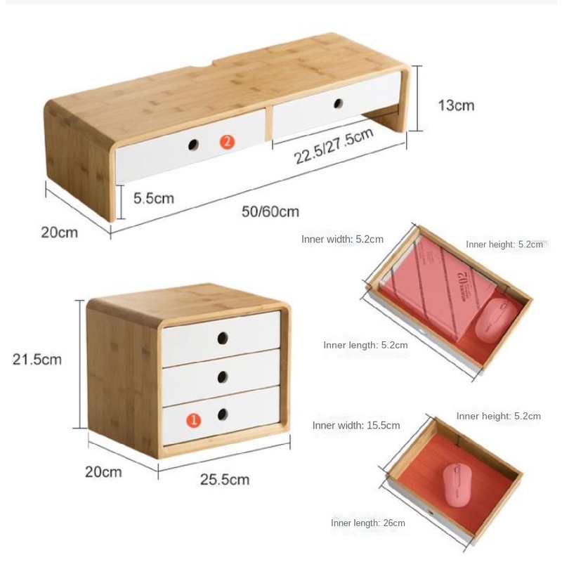 Computer Racks Desktop Storage Box Notebook Shelf Monitor Stand/Wooden Storage Box with Drawer