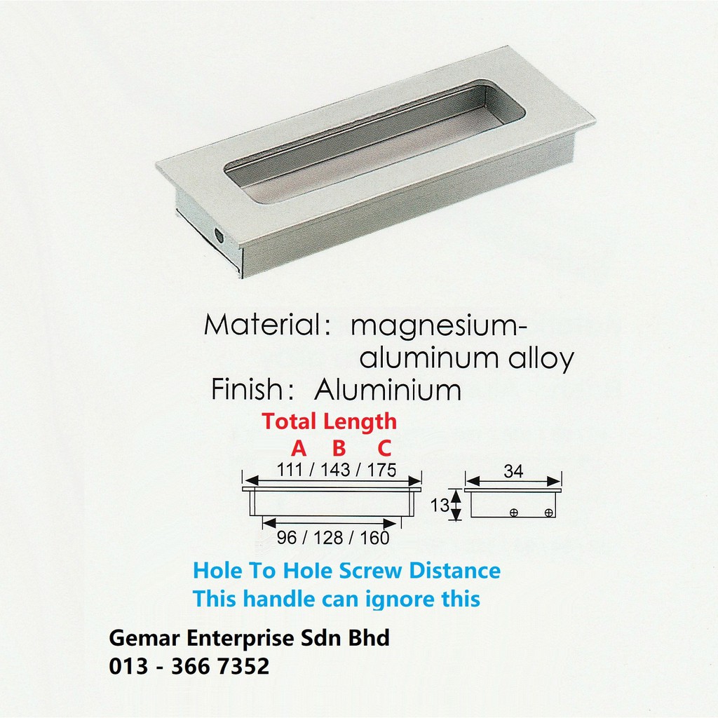 Concealed / Flushed Pull Handle For Drawer or sliding Doors Aluminium Silver - (READY STOCK)