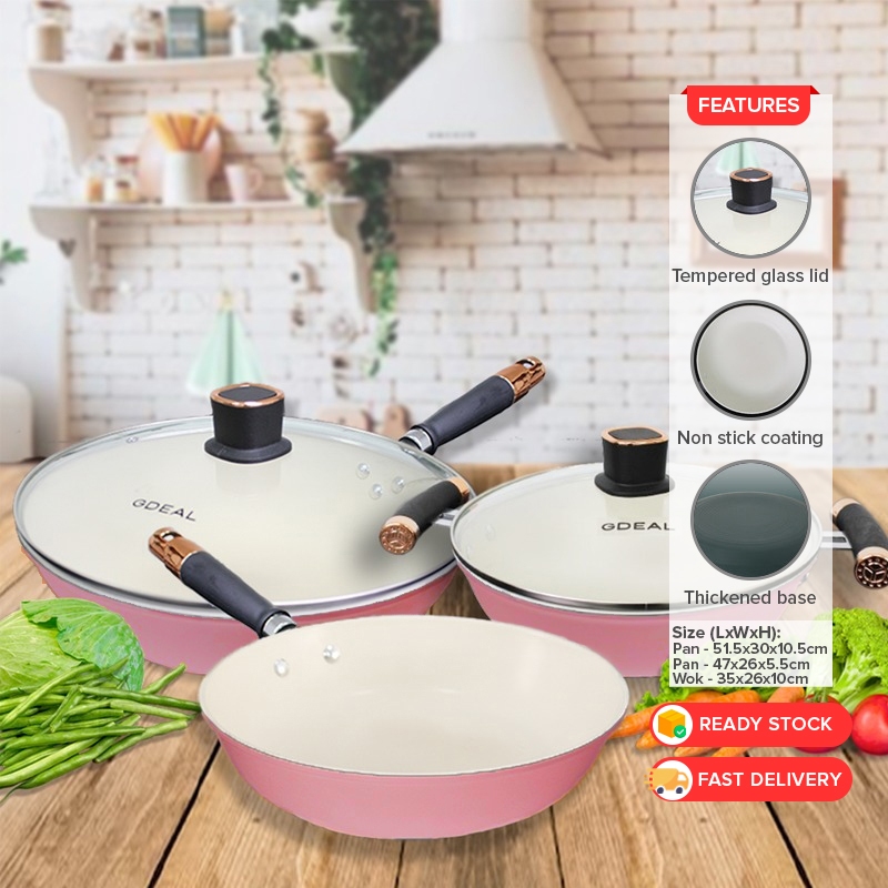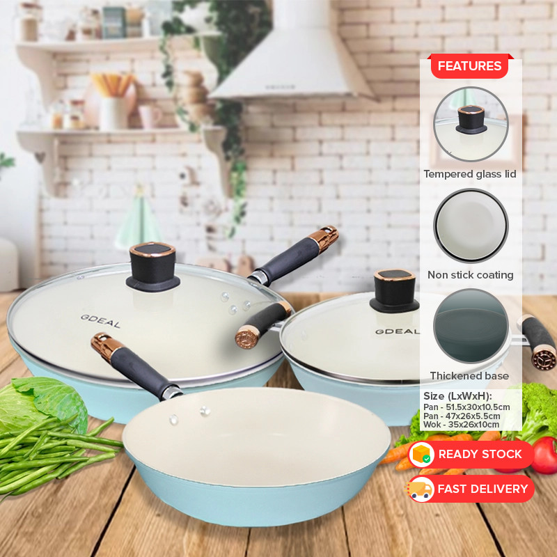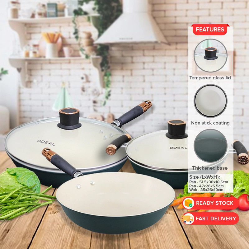 GDeal Set Of 5 Non Stick Kitchen Cookware Wok Pot Pan Fryer Cooker With Glass Lids