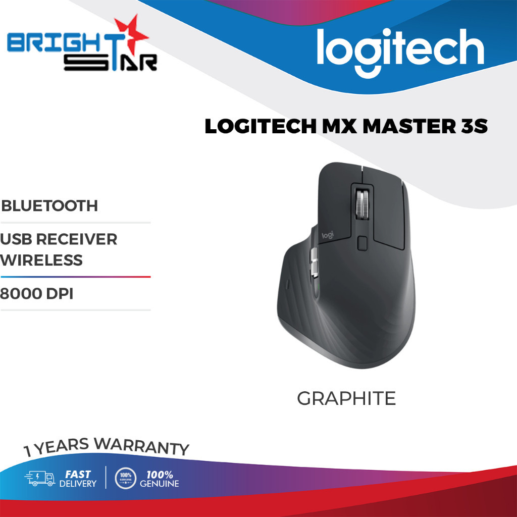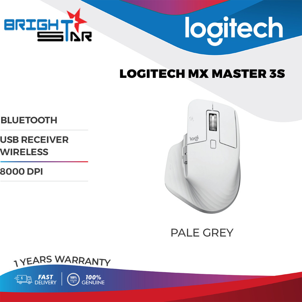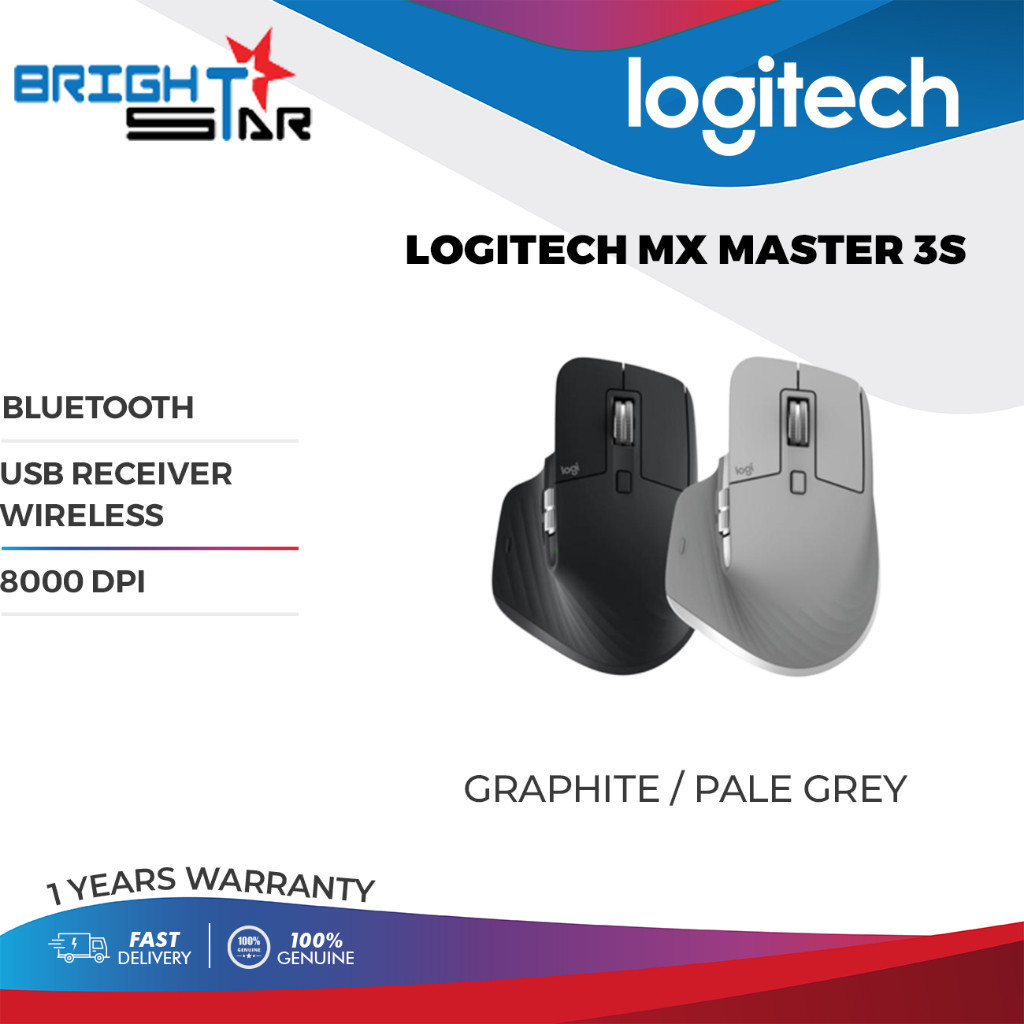 Logitech MX Master 3S Bluetooth Wireless Mouse - Graphite/Pale Grey