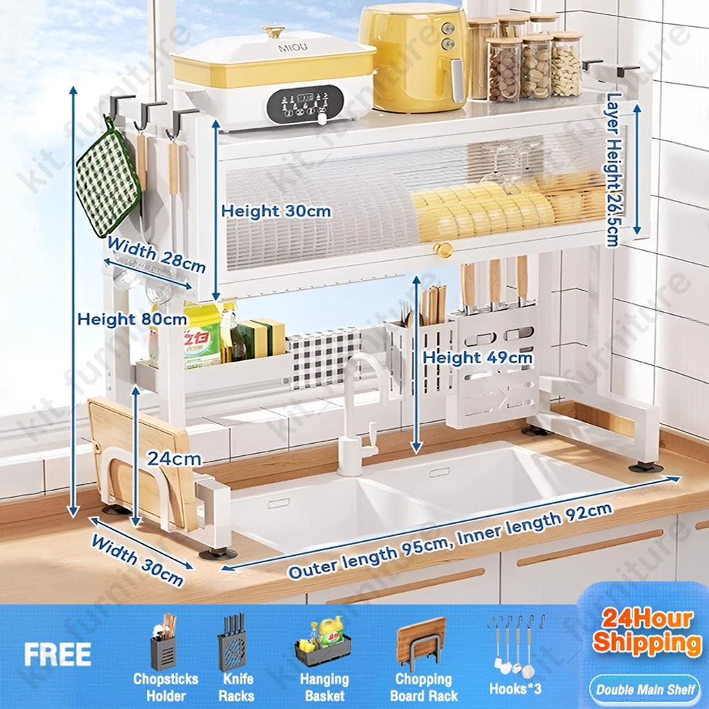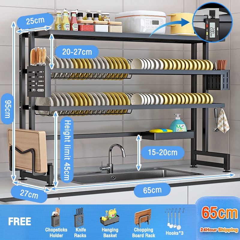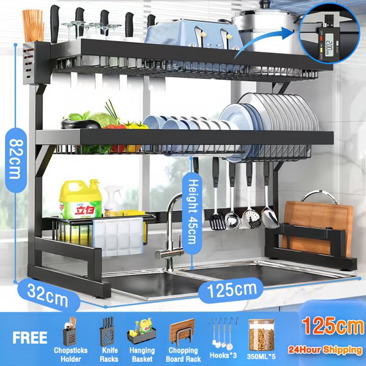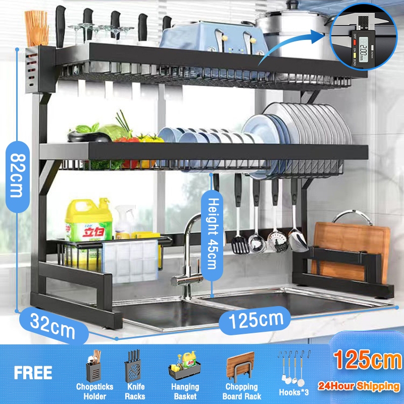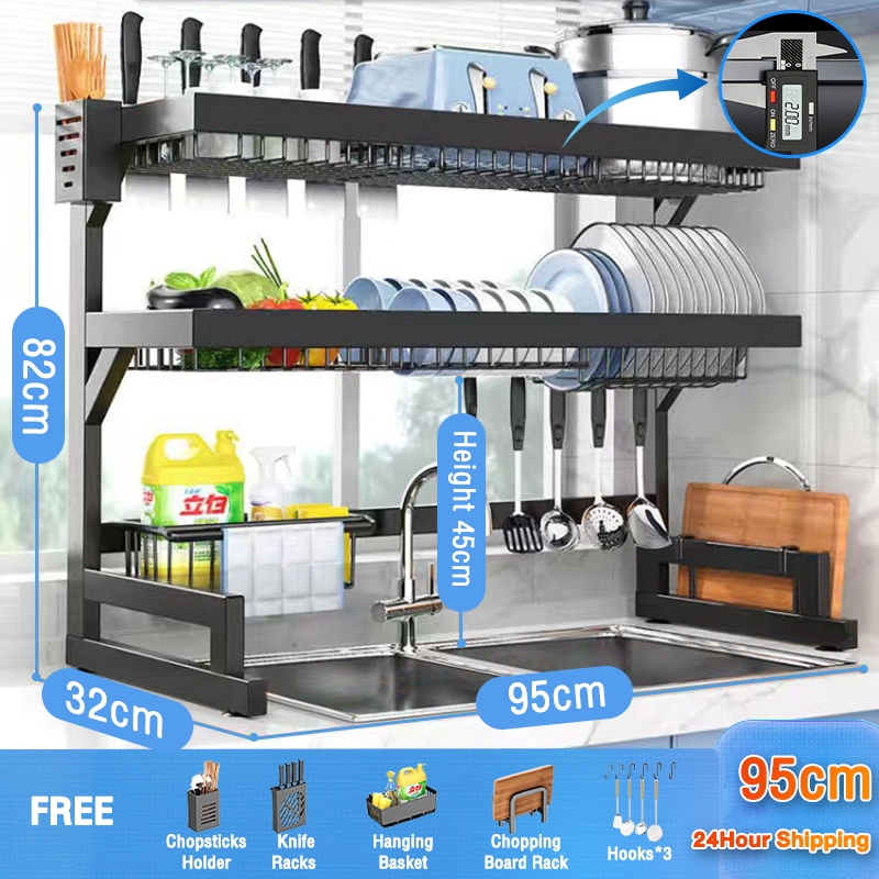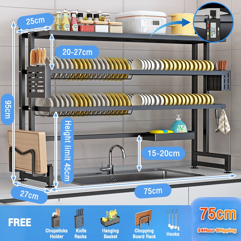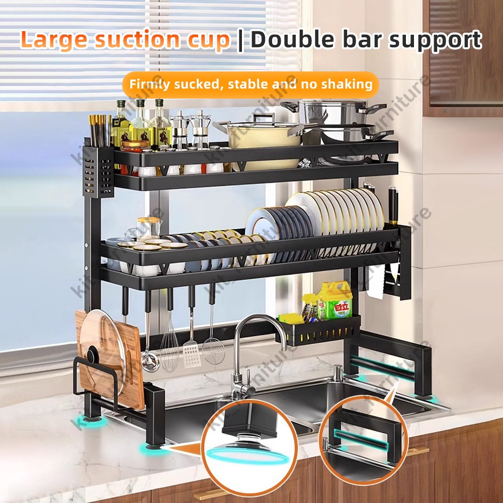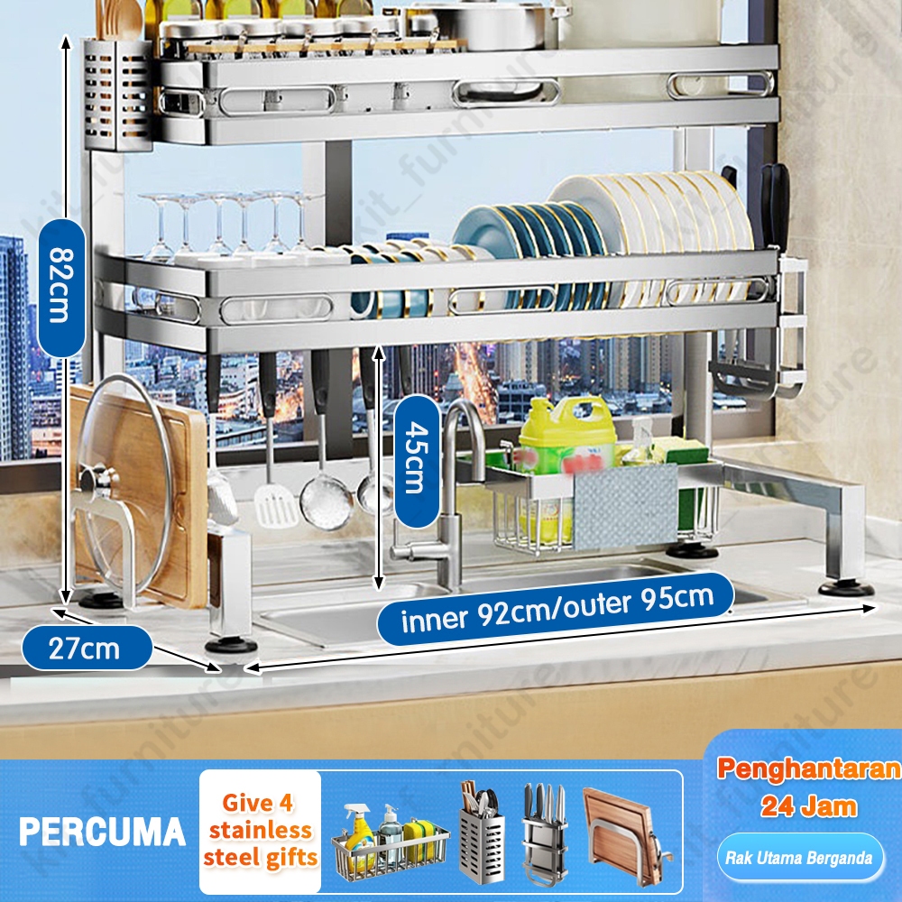 Kit Rak Pinggan Sinki Mangkuk Stainless Steel Rak Dapur Drying Rack Dish Kitchen Organizer Rack Sink Dish Drainer
