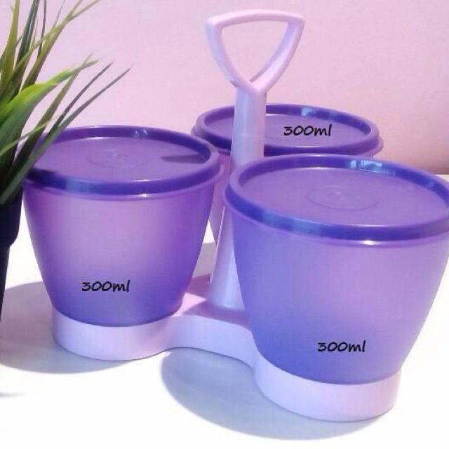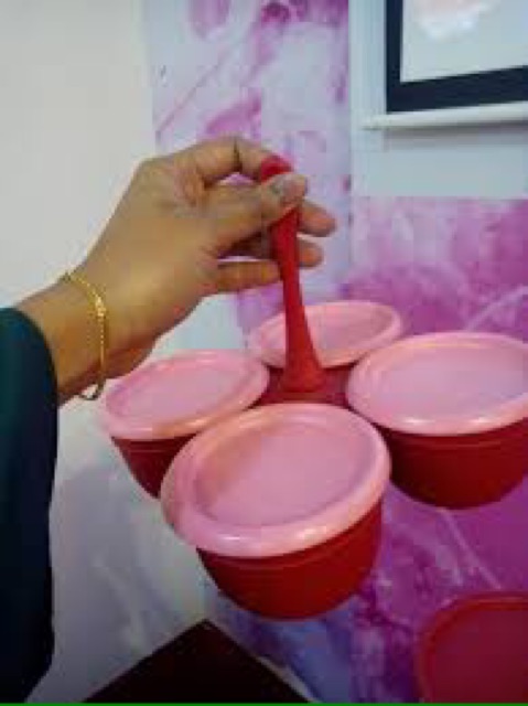 Condimate Server Tupperware bekas hidang bahan laksa sup kacang sambal ikan bilis telur kuih raya kekacang candy