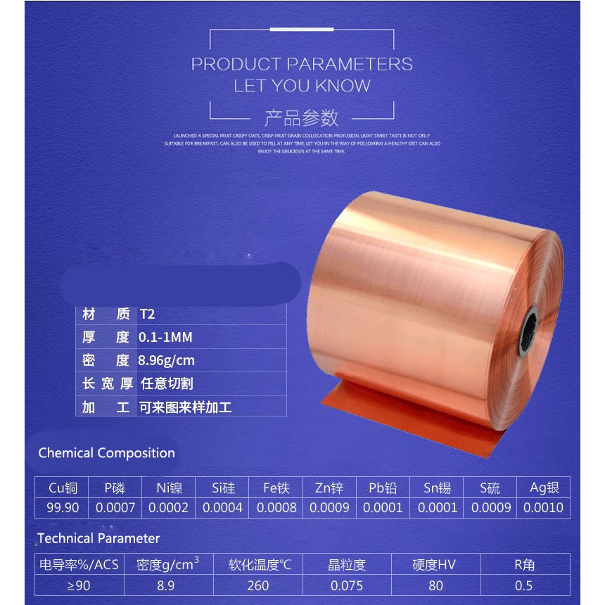 Conductive Copper Foil Sheet 100mm/200mm For Heatsink/Current Shielding 0.03mm/0.05mm/0.08mm/0.1mm/0.15mm/0.2mm/0.3mm