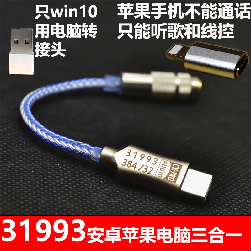Conexant CX31993 USB Type C Earbuds DAC Headphone Amp Blue with 3.5mm For Android iOS Windows10 phone call