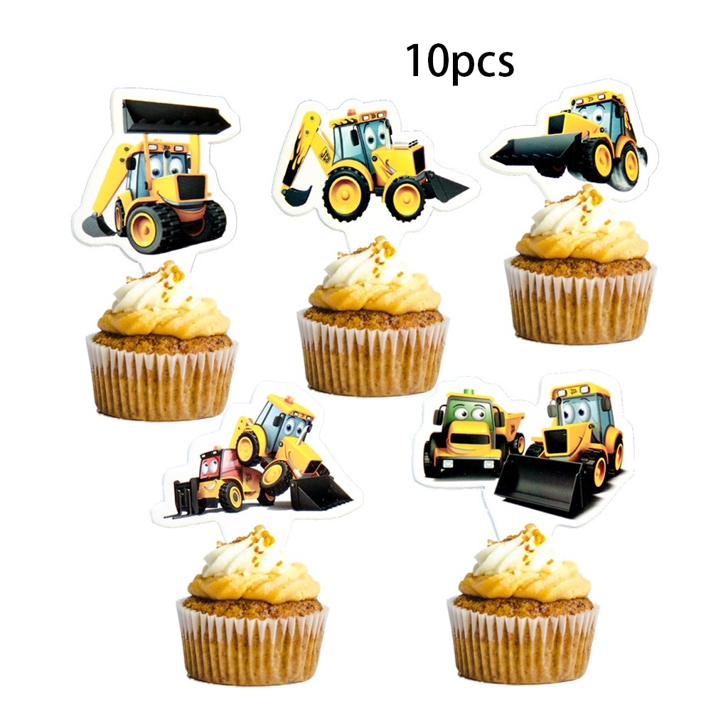 Construction Theme Engineering Vehicle Birthday Banner Cake Cupcake Toppers for Birthday Party Decorations Supplies