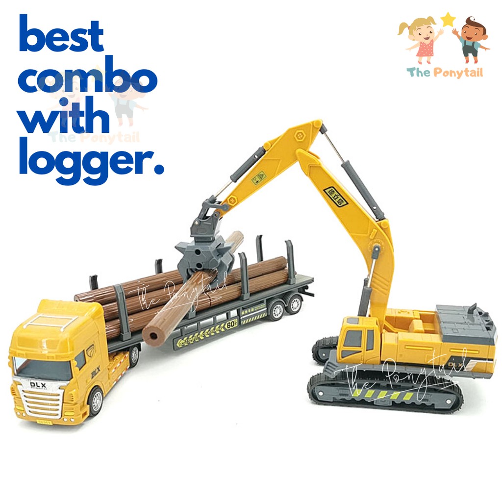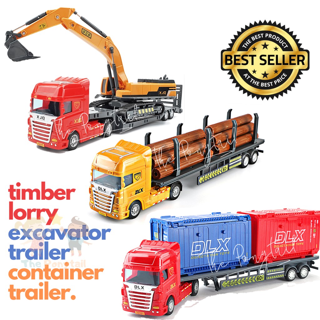 Construction Toy Vehicle Excavator Trailer Container Truck Timber Lorry Kids Toys Lego Robot Play Set