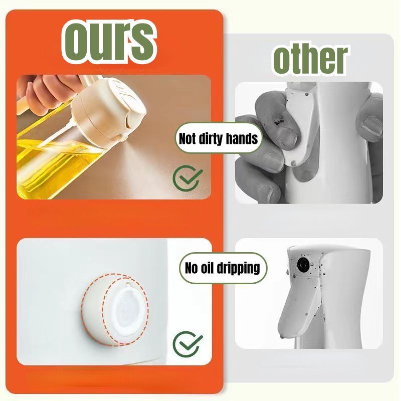 2 IN 1 Oil Bottle Dispenser & Sprayer With Glass Bottle Anti Leakage Fine Mesh Spray Nozzle Auto Backflow Pouring Port