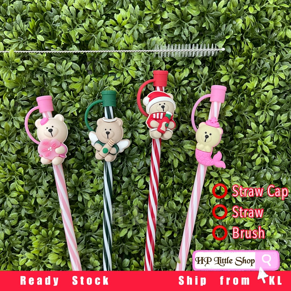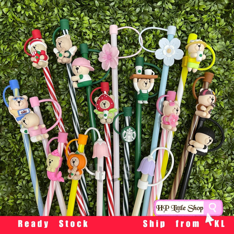 ❗Ready Stock❗HLS Cutie Straw Cap Starbucks Accessories Straw Protection 卡通小熊吸管塞