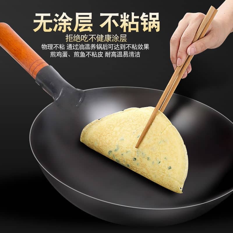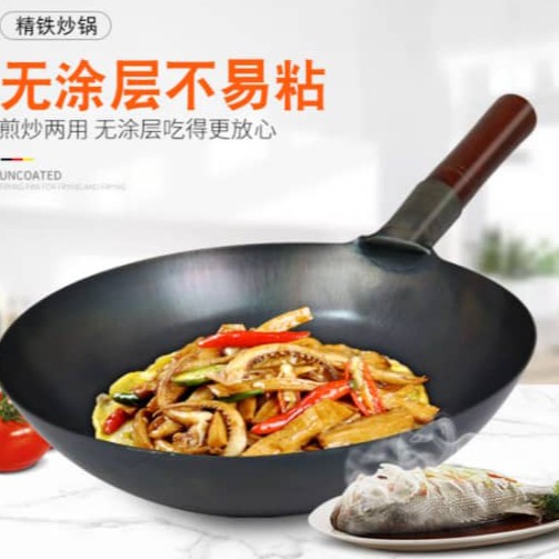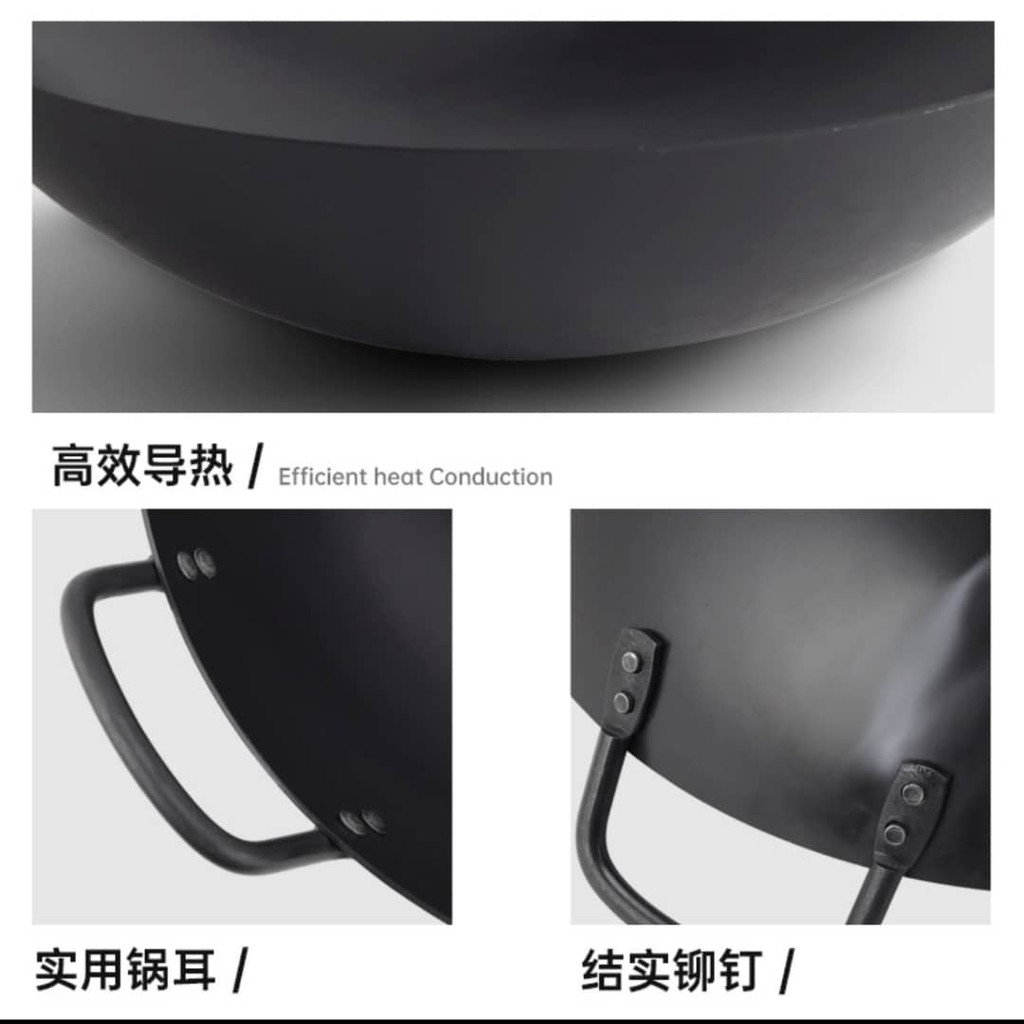 老式熟铁锅铸铁炒锅家用无涂层手工不粘锅燃气灶炒菜锅 Pre-Seasoned Wok Old-fashioned cast iron Carbon Steel wok /Wok Jenis lama/chinese wok/wok besi