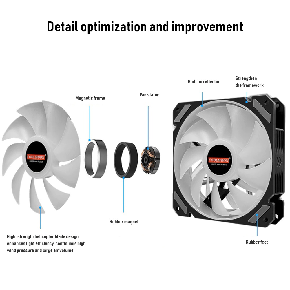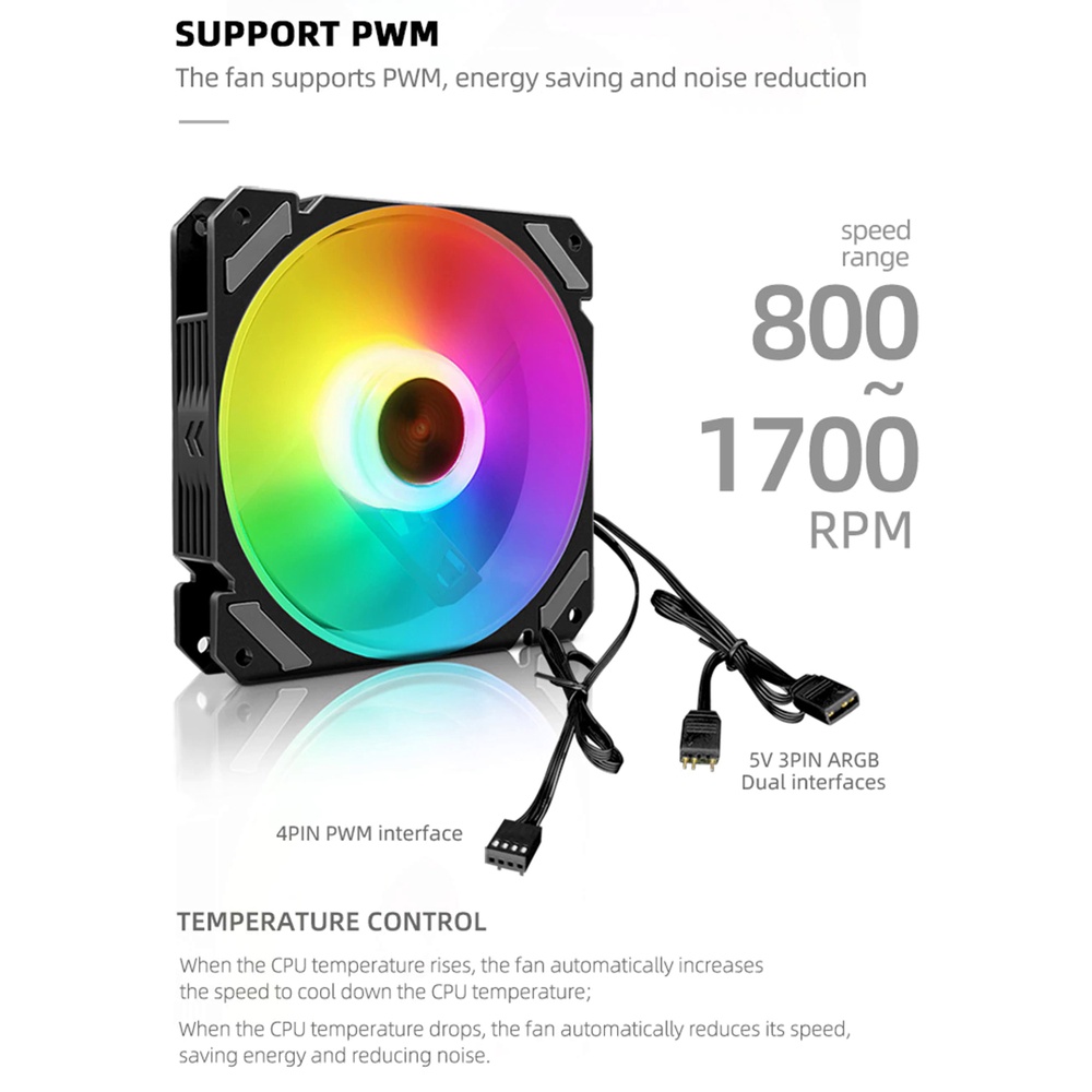 CoolMoon 12cm ARGB+PWM PC Case Cooler Fan 5V3Pin Aura Sync Speed Adjustable Casing Fan