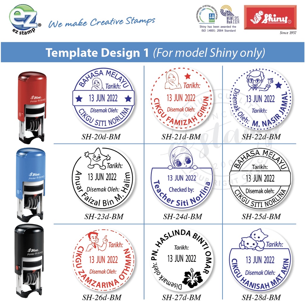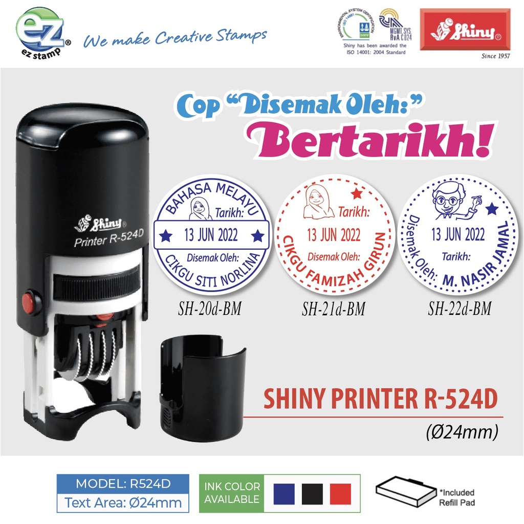 Cop Bertarikh Ulasan Guru "Disemak Oleh/ Checked by Bertarikh Dater Stamp" - SHINY Printer R524D