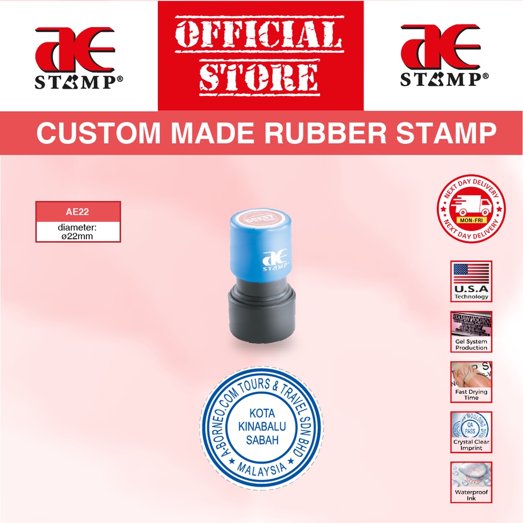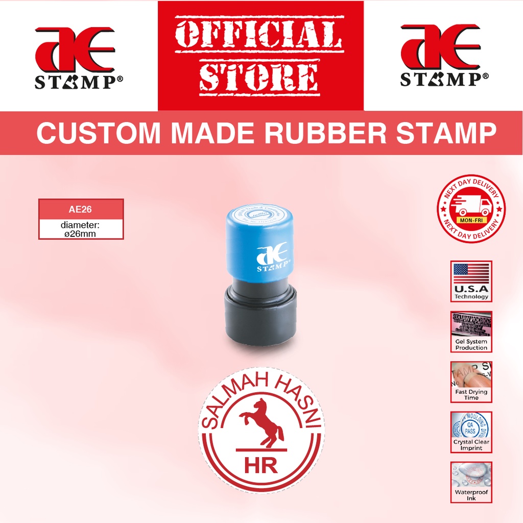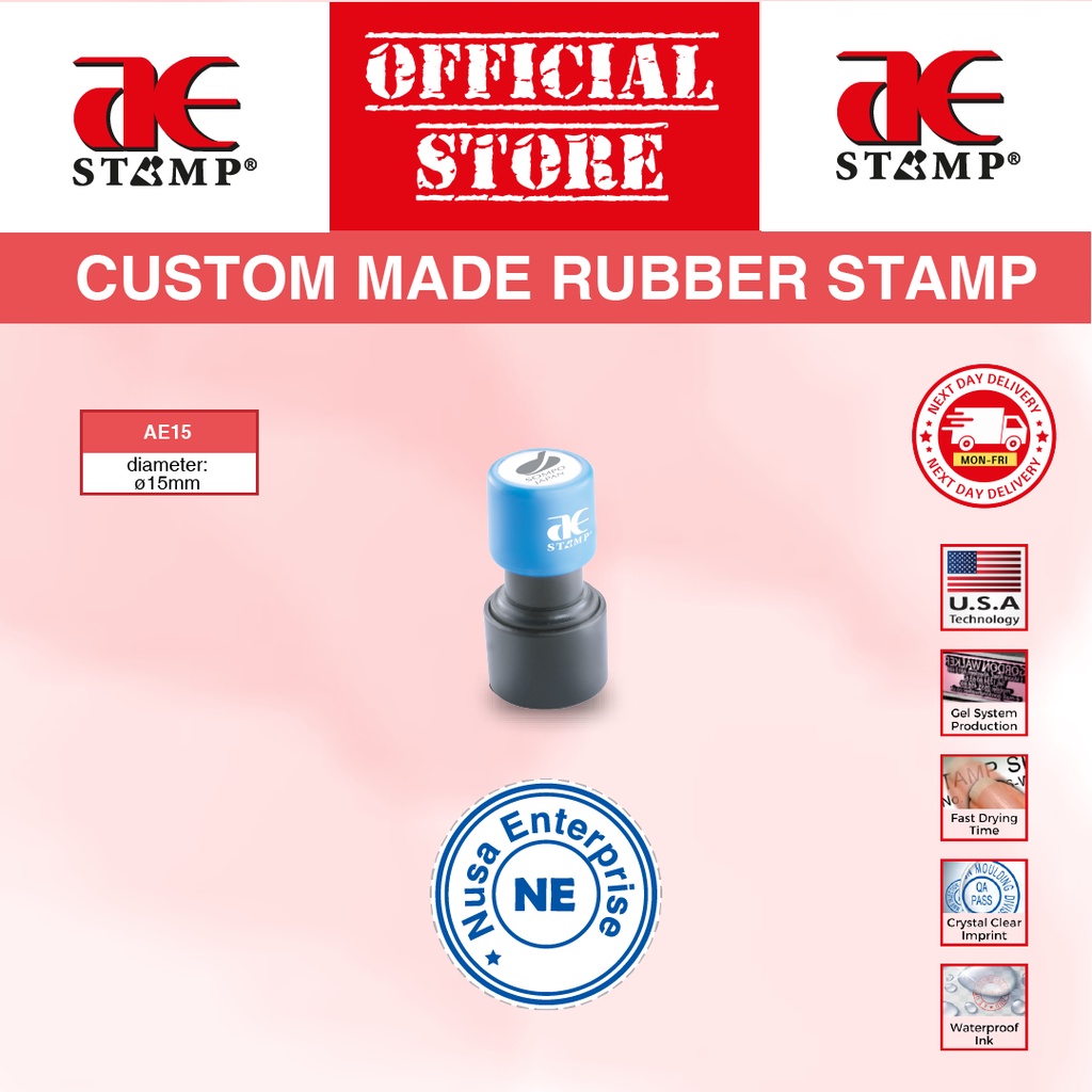 Cop Getah Bulat AE Gel Tempahan Khas | Cop Getah Syarikat | cop nama custom | cop logo syarikat | cop bulat syarikat