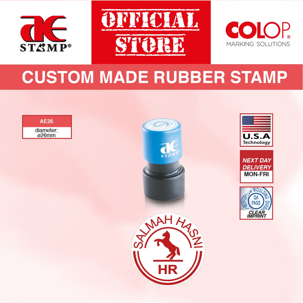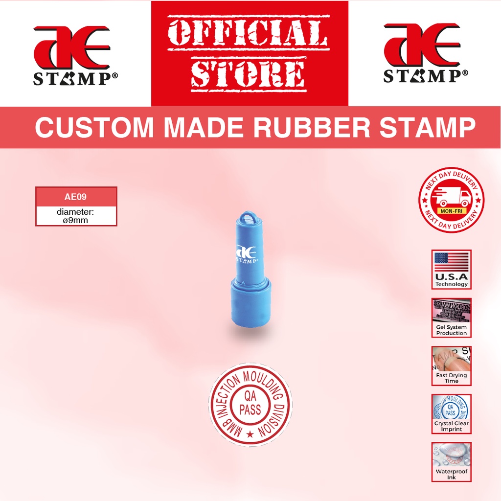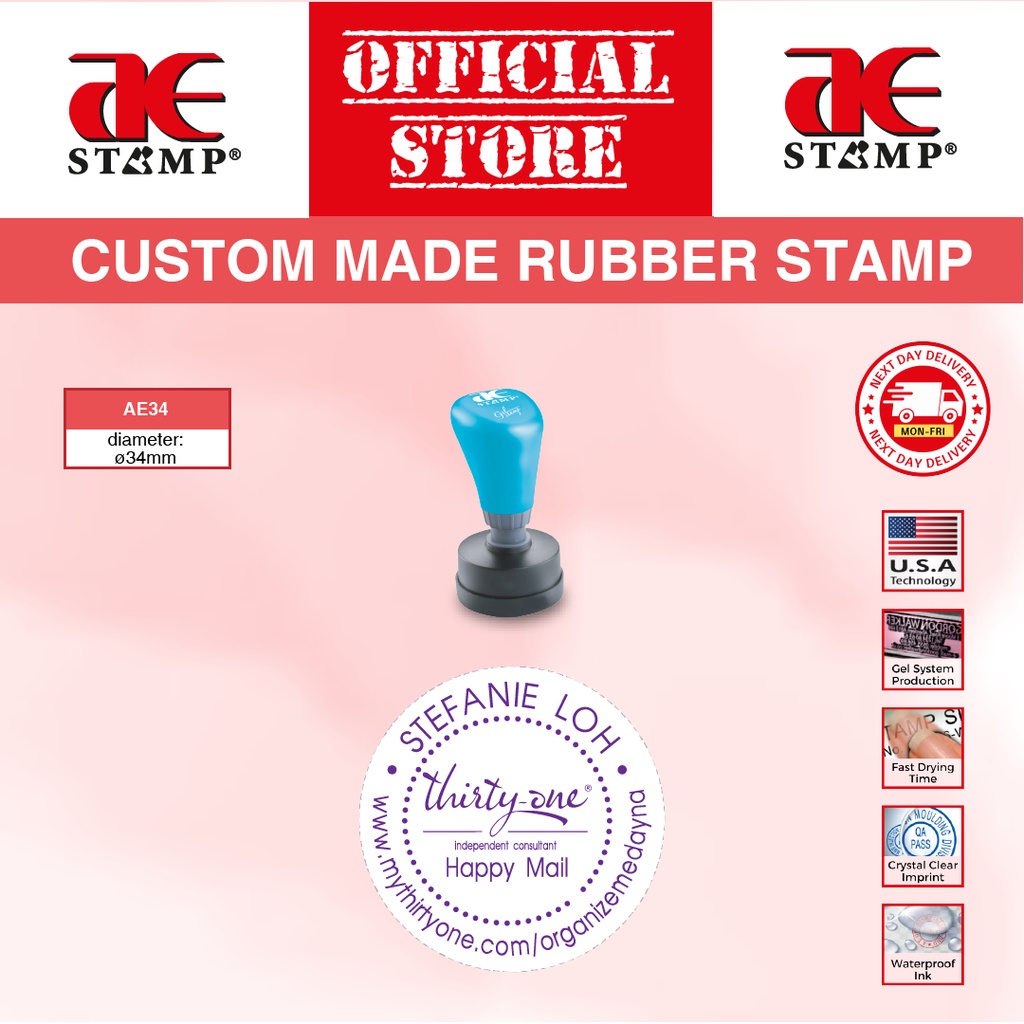 Cop Getah Bulat AE Gel Tempahan Khas | Cop Getah Syarikat | cop nama custom | cop logo syarikat | cop bulat syarikat