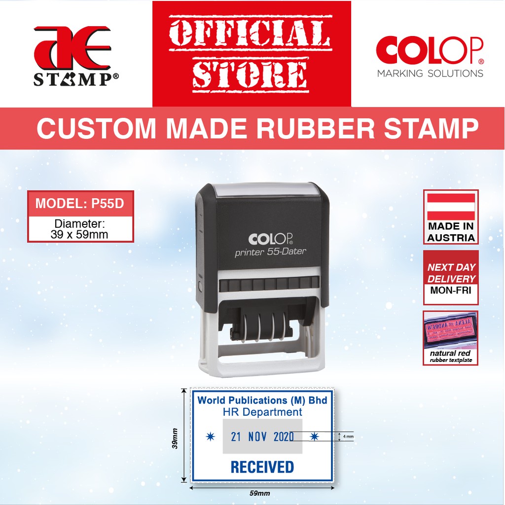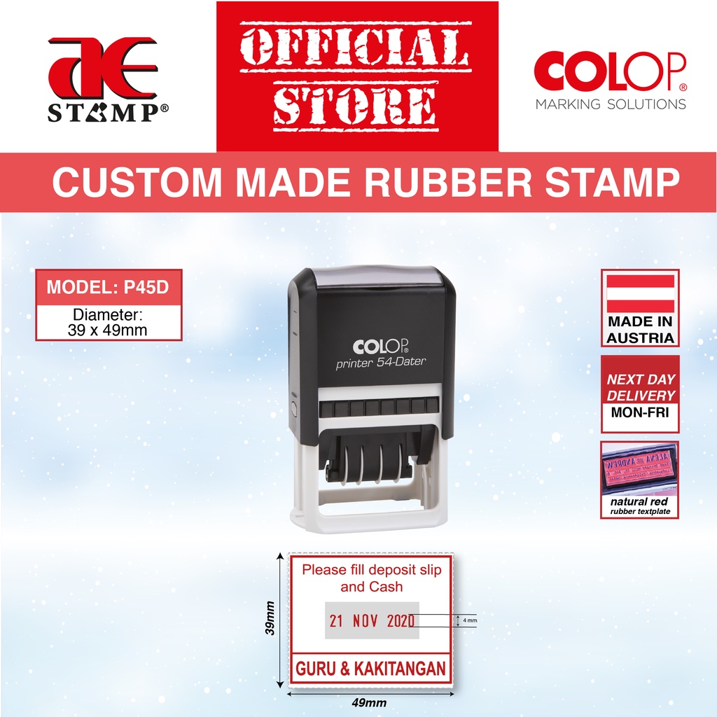 Cop Tarikh Segi Empat COLOP | Cop Berdakwat | Cop Tarikh | Cop Getah Segi Empat | Pembuatan Khas Untuk Pejabat
