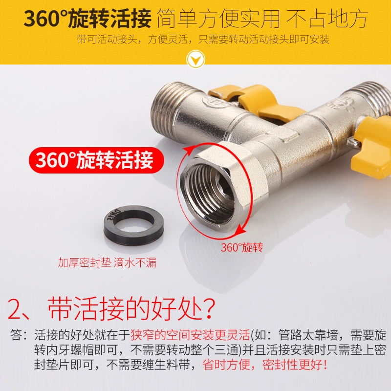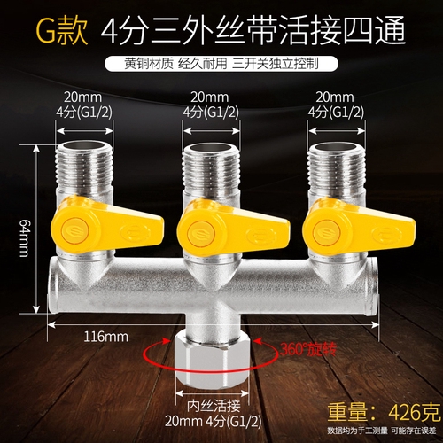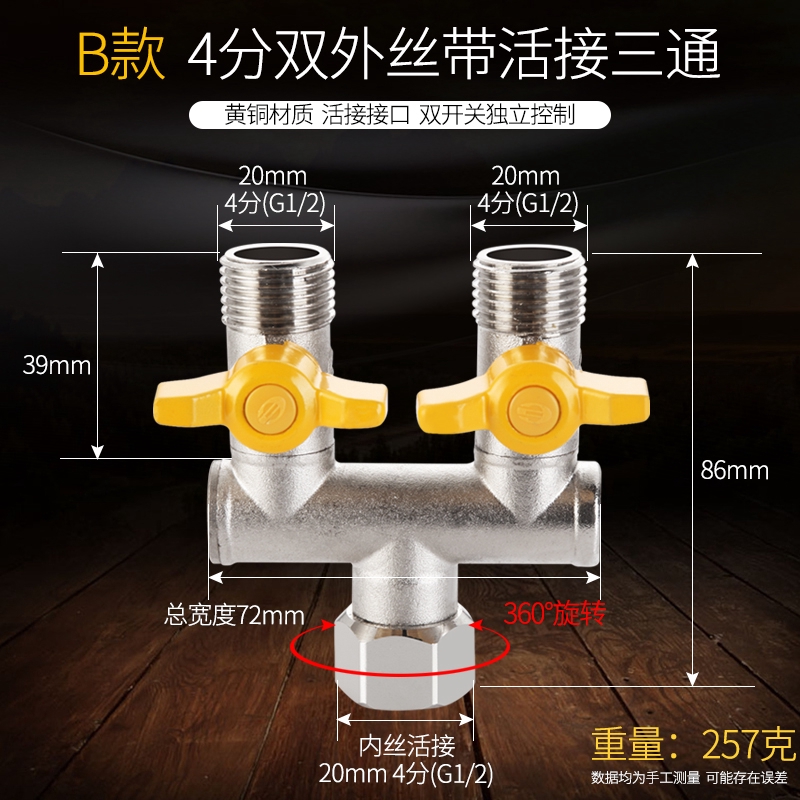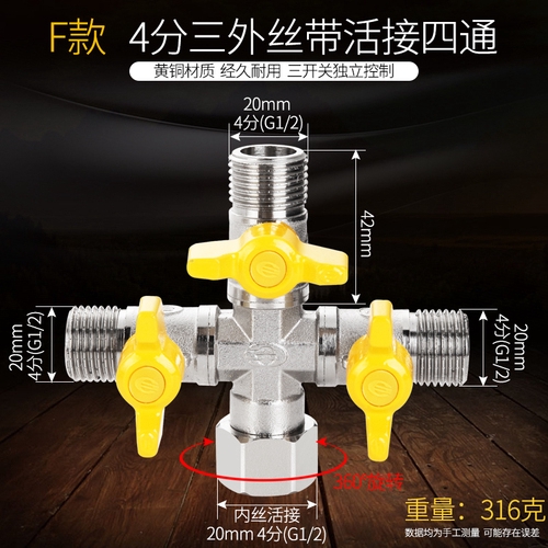 Copper Triangle Valve Splitter One Point Two Double Outlet Inlet Faucet Water Separation Switch Three-Way