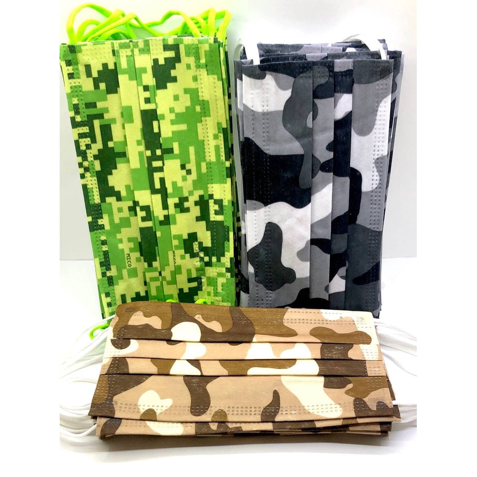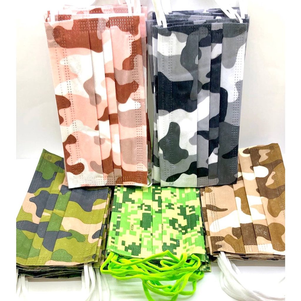 Corak Askar 5 Corak Bercampur Mix 3 Lapisan 50 Keping Earloop Jenis Pakai Buang Untuk Dewasa