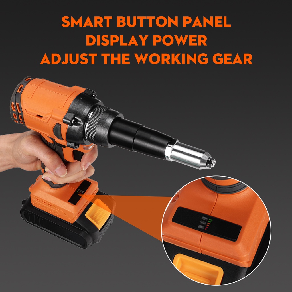 Cordless Electric Rivet Guns Insert Nut Pull Riveting Tool 2.4-4.8mm Rivet Nut Guns Drill With LED Light For 1/2PCS Battery 10000 N