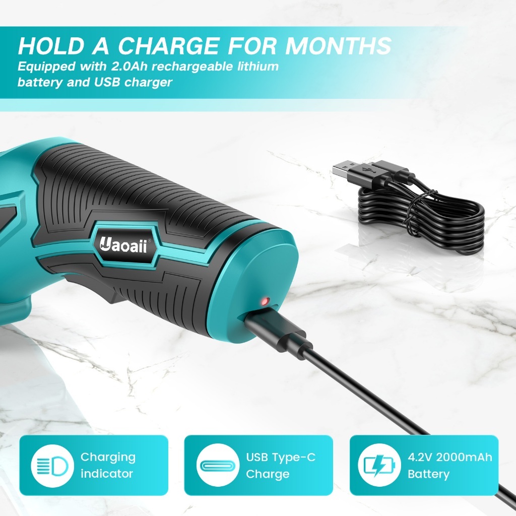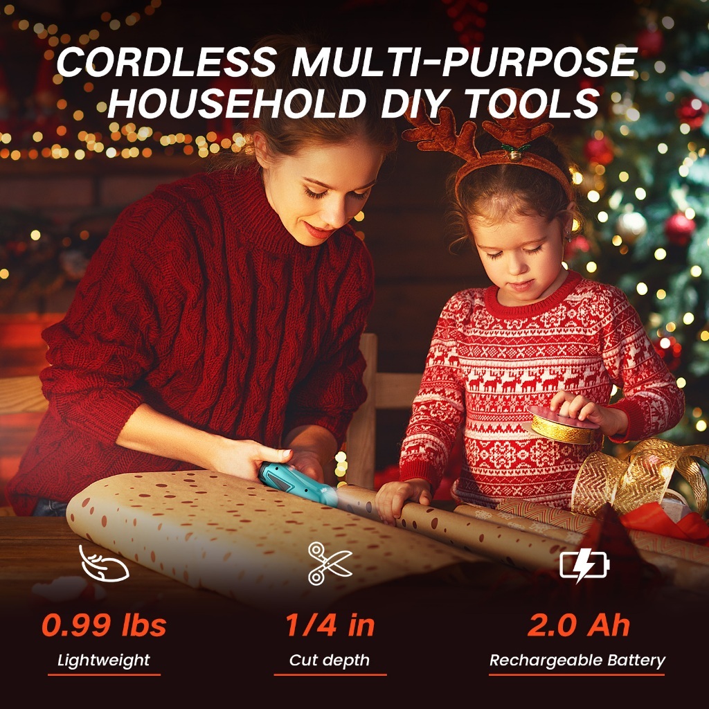 Cordless Electric Scissors 4V Electric Cardboard Box Cutter w/Storage Case, Safety Lock & LED Light Rechargeable Fabric Cutter Power Rotary Cutters for Leather Felt