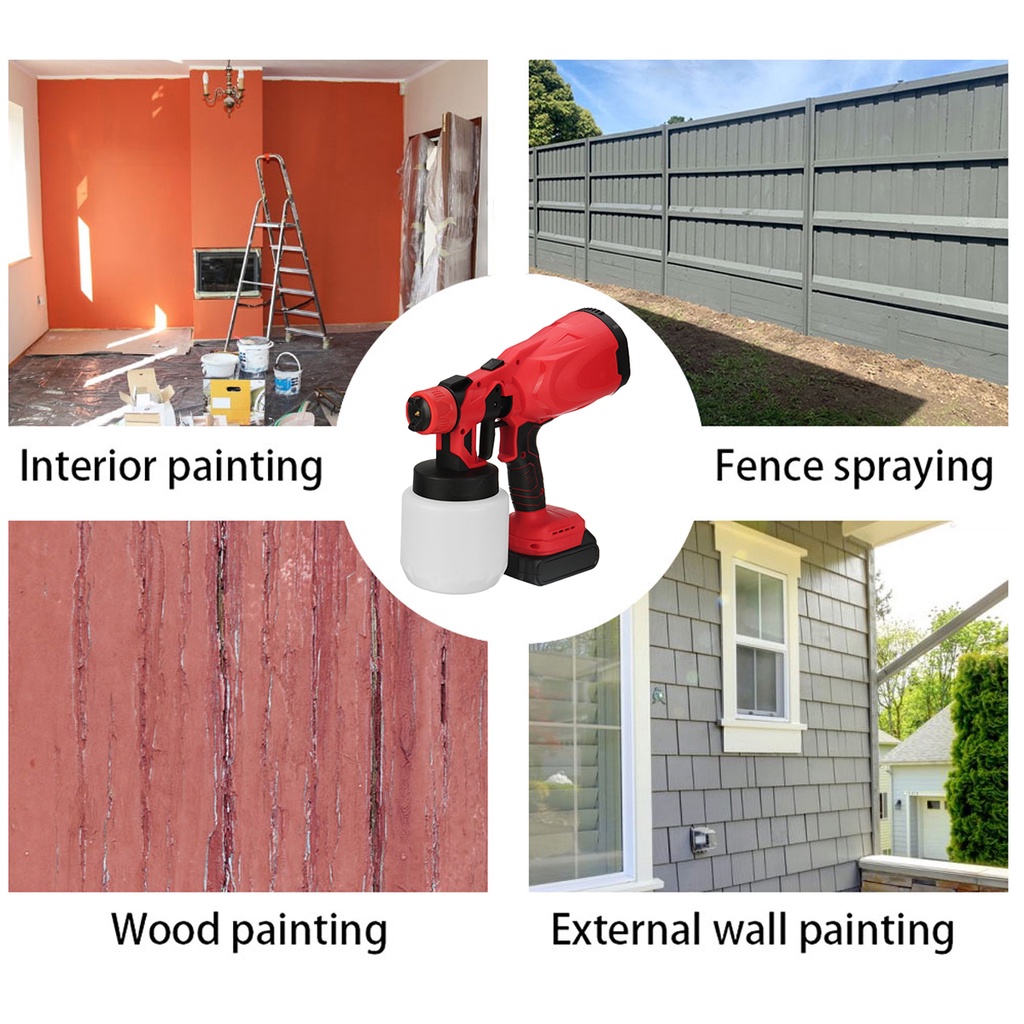 Cordless Electric Spray Guns High Power Home Paint Sprayer 800ml With 3 Nozzle Flow Control Airbrush For 18V Battery 1500W