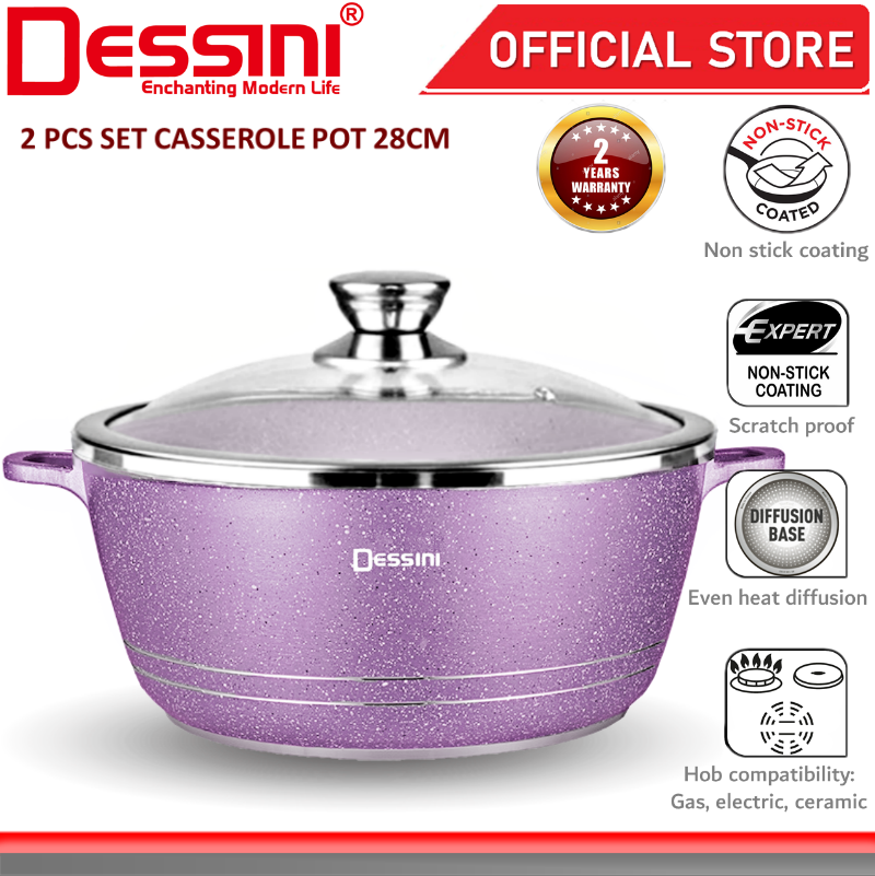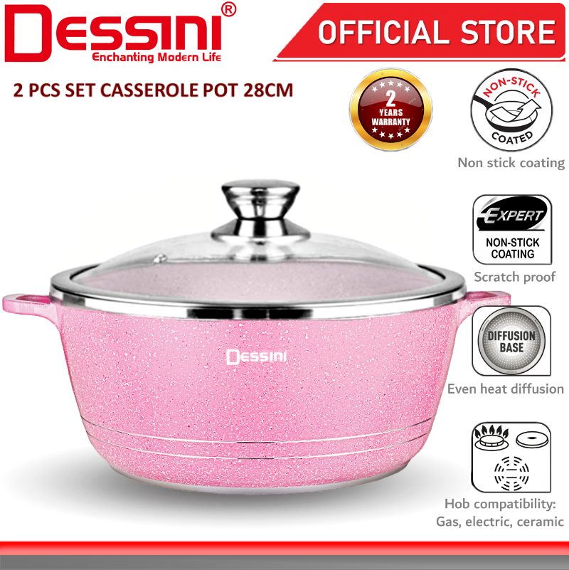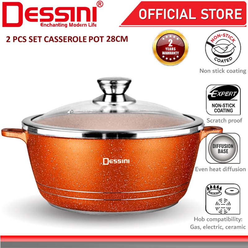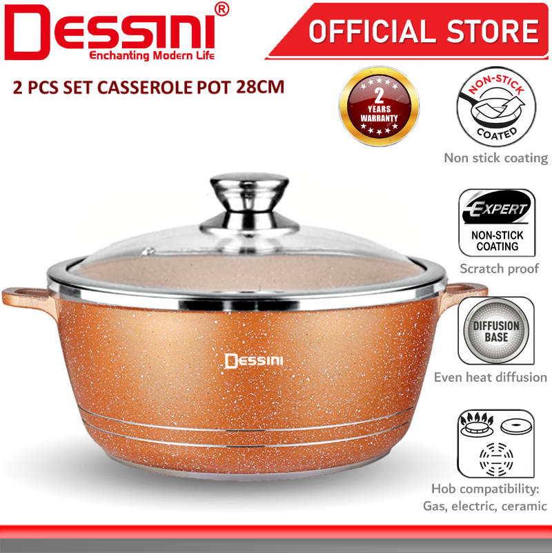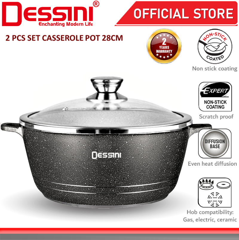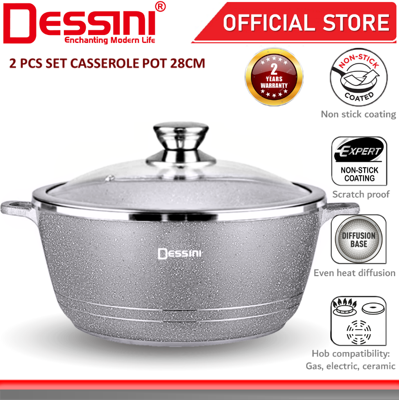DESSINI ITALY Granite Die Cast Aluminium Non Stick Casserole Pot Bowl Deep Fry Pan Cookware Tool (28cm)